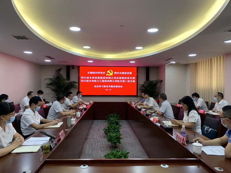 2021年8月4日,省水發集團總部第四黨支部與工程局公司機關第二黨支部在工程局公司成都總部會議室聯合開展“支部結對學黨史.攜手共建促發展”黨史學習教育專題黨課活動。集團黨委委員、工程局公司黨委書記、董事長代勇,集團黨委委員、總工程師黃永沾,集團副總經理隆文非以普通黨員身份參加所在支部組織的活動。