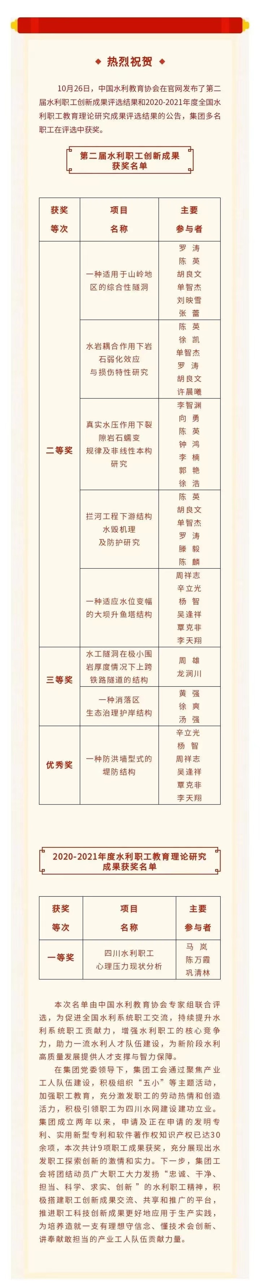 喜報!集團在第二屆水利職工創新成果獲獎名單和2020-2021年度水利職工教育理論研究成果獲獎名單出爐