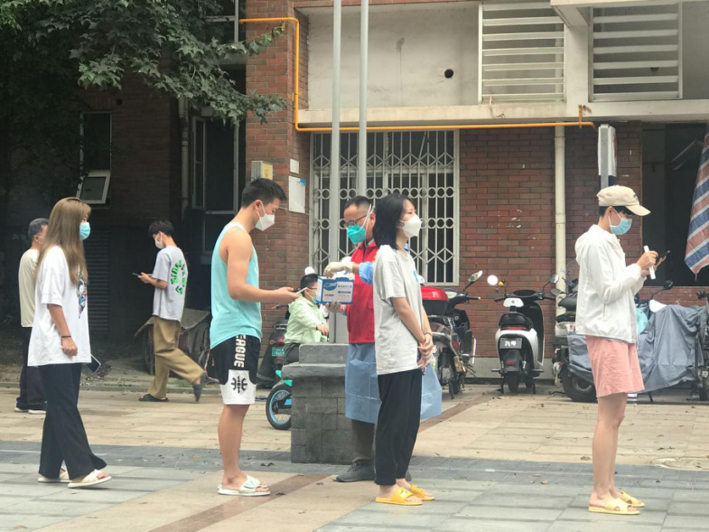 后勤服務部張正偉正在進行核酸檢測宣傳