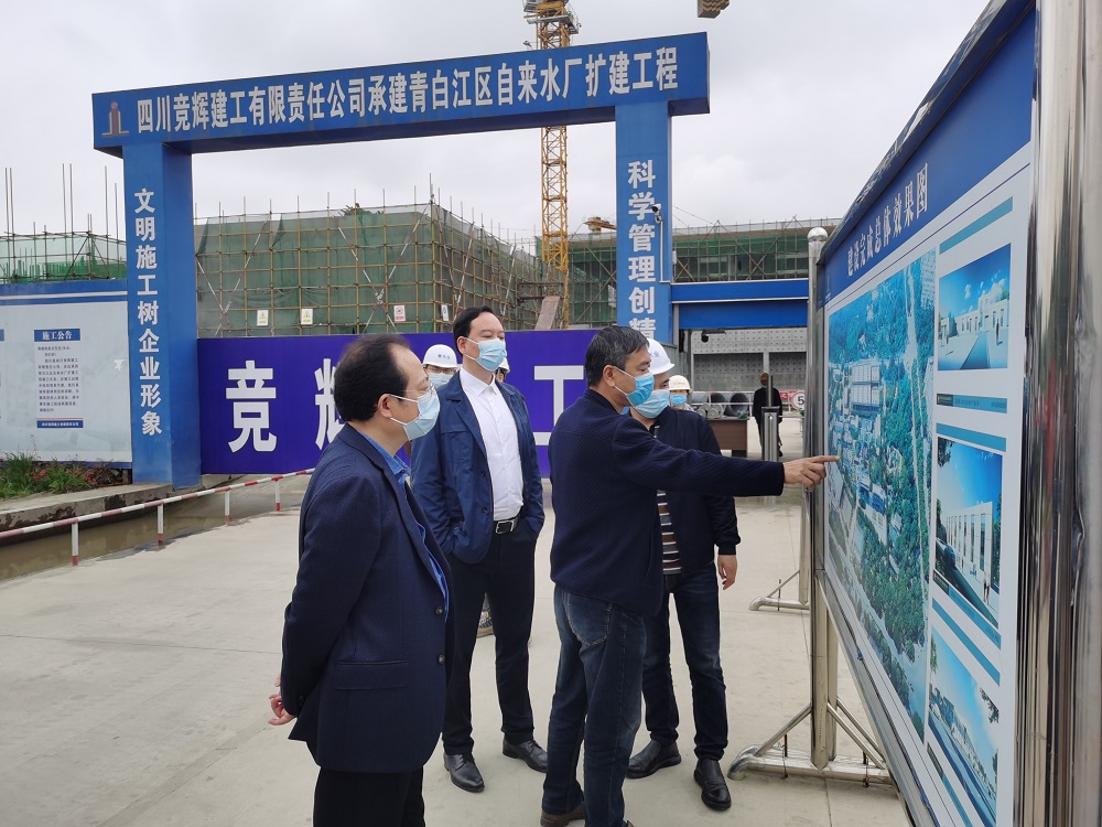 鐘杰董事長一行首先前往成都青白江水業股份有限公司,先后視察了該公司20T自來水廠擴建項目工地和現有自來水生產線,詳細詢問了工程規模、建設進度、質量控制、安全生產等情況,聽取了成都青白江水業股份有限公司經營班子工作匯報。