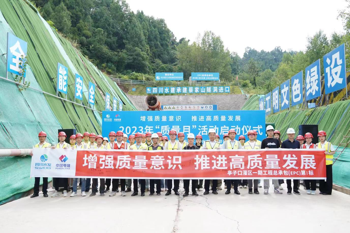 9月初,亭子口灌區一期工程設計-采購-施工總承包(EPC)第Ⅰ標項目部組織全體職工及現場主要參建單位代表在蔡家山隧洞進口舉行“質量月”活動啟動儀式,現場參加人員進行活動宣誓并在宣傳橫幅上簽字,表達了對實現項目質量工作目標的信心和決心。