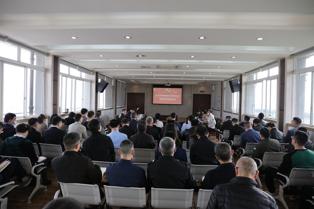 會上,王剛強帶頭領學習近平總書記在黨史學習教育動員推進會上的重要講話精神,并就設計院公司的黨史學習教育工作從四個方面作了安排部署。一是提高政治站位,深刻領會開展黨史學習教育的重要目的和重大意義。開展黨史學習教育是堅定信仰信念、在新時代堅持和發展中國特色社會主義的必然要求;是牢記初心使命、推進中華民族偉大復興的必然要求;是推進黨的自我革命、永葆黨的生機活力的必然要求。我們必須站在講政治的高度,以史為重、以史為衡、以史為鑒、以史明路,把學習黨的歷史、端正理想信念作為共產黨人、國企人終身的必修課。二是明確目標要求,推進工作落實。公司黨委理論中心組要示范引領,黨委班子成員要學在前,作表率,領導干部要帶頭學、帶頭講。公司黨員干部要進一步堅定理想信念,錘煉黨性,不斷增強“四個意識”,堅定“四個自信”, 做到“兩個維護”,將“學史明理、學史增信、學史崇德、學史力行”貫穿始終。三是堅持學以致用,守正創新,將學習黨史與實際工作有機結合。切實將黨史學習教育與落實全面從嚴治黨要求,提升公司黨建工作質量結合起來;與補齊水利工程短板,構建“五橫六縱”引水補水生態網絡結合起來;與提升技術和服務水平,增強公司發展實力結合起來,切實將黨史學習教育成果轉化為推動公司高質量發展的澎湃動力。四是注重學習成效,為群眾辦實事。黨委要組織開展“開門問計”活動,征集干部職工對公司工作的意見建議。結合公司工作實際和職工關心關注的熱點、難點問題以及調研情況,梳理形成辦實事項目清單。推動解決一批黨員干部、職工群眾關心的實際問題、反映強烈的突出問題,不斷提升職工群眾獲得感和滿意度。