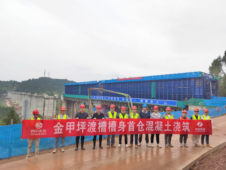4月17日,亭子口灌區一期工程金甲坪渡槽首跨槽身完成澆筑。金甲坪渡槽是該標段第4座高大渡槽,位于總干渠第8流量段,其設計流量為51.25立方米/每秒,槽身設計為預應力梁式槽跨結構,槽身寬6.4米,深5.57米,跨徑布置為15跨42米,全長630米,是安全質量管控的重點部位,在大跨度現澆支架施工過程中,承臺及支架基底開挖易破壞周邊地質穩定狀態,其第15跨槽身橫穿244國道,槽下凈空小、行車流量大、干擾因素多。