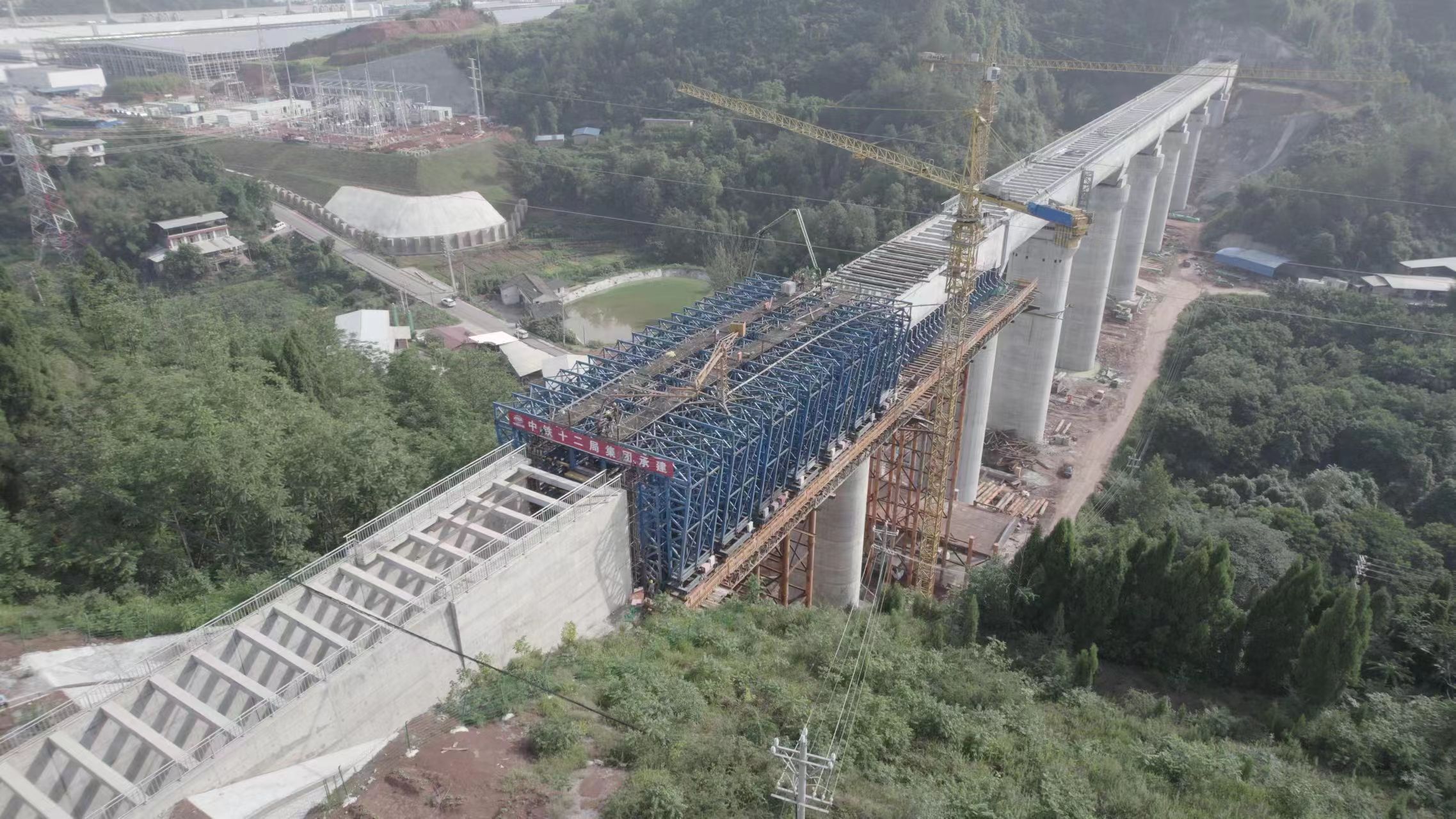 在施工過(guò)程中,銀匠溝渡槽面臨了諸多挑戰(zhàn),如槽身結(jié)構(gòu)斷面大、架空高度高、自重荷載大、單孔跨度大等,水發(fā)集團(tuán)向家壩公司及其參建團(tuán)隊(duì)迎難而上,充分發(fā)揮主觀能動(dòng)性,通過(guò)1:1原型仿真試驗(yàn)優(yōu)化設(shè)計(jì)方案,改進(jìn)施工工藝并采用“托-膺架”的組合支撐體系以及研發(fā)自行模架工裝,不僅成功克服了施工難題,還極大降低了施工風(fēng)險(xiǎn),提高了施工效率。
