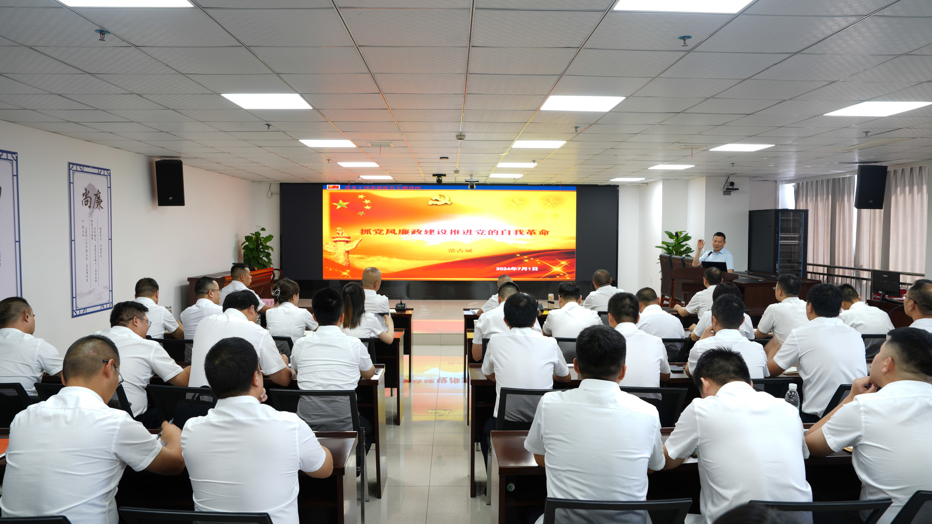會上,授課老師以《抓黨風廉政建設推進黨的自我革命》為題,從保持解決大黨獨有難題的清醒和堅定、加強黨風廉政建設的緊迫性和新要求、提升黨性修養落實黨風廉政建設職責等三個方面為全體黨員和干部職工講授專題黨課。