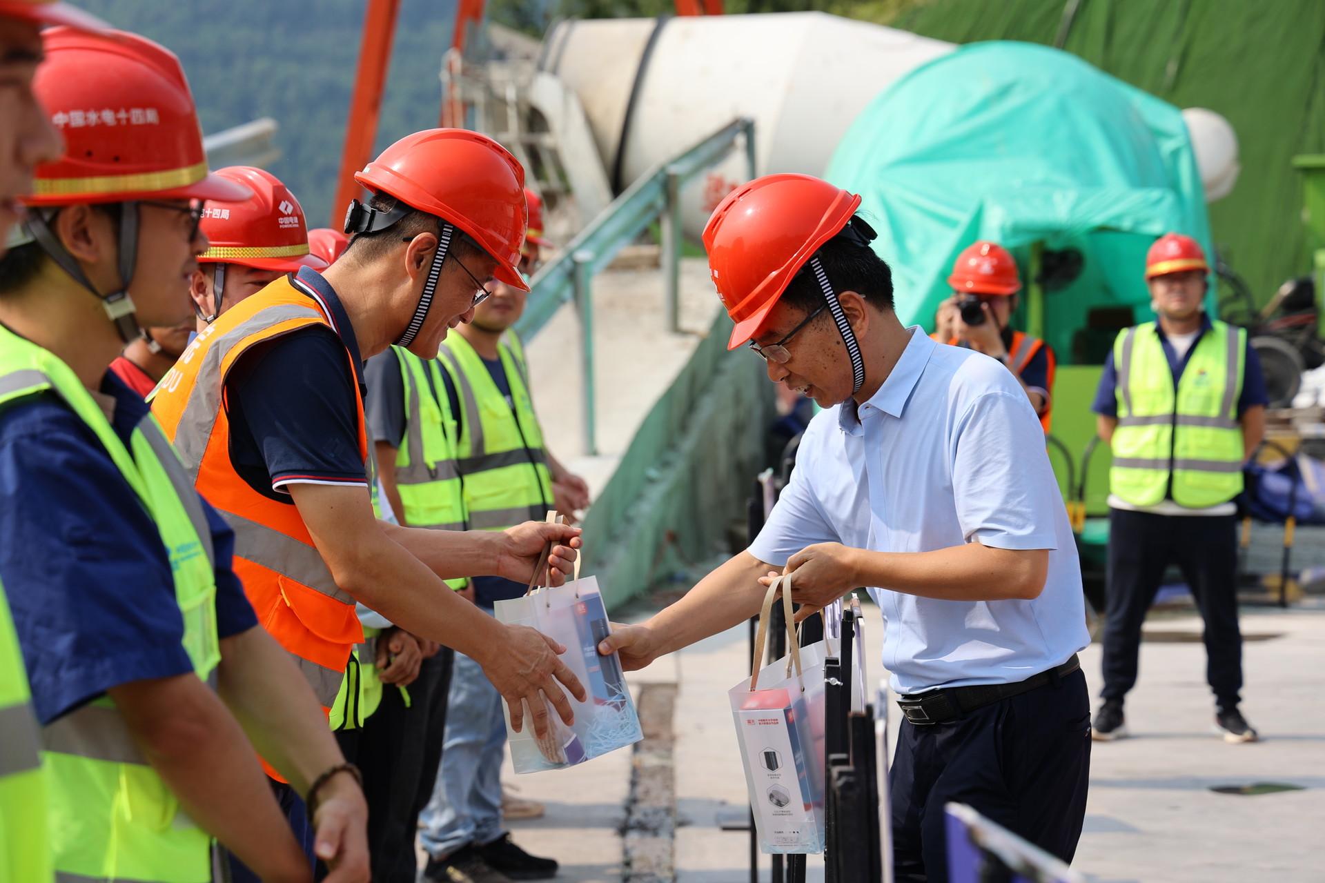 李富忠一行深入施工現(xiàn)場(chǎng),看望慰問(wèn)項(xiàng)目一線(xiàn)職工,向鏖戰(zhàn)“秋老虎”、堅(jiān)守一線(xiàn)、默默奉獻(xiàn)的建設(shè)者們致以誠(chéng)摯的問(wèn)候,感謝大家為四川省民生工程建設(shè)作出的貢獻(xiàn),并送上慰問(wèn)品。走訪慰問(wèn)期間,李富忠叮囑一線(xiàn)干部職工務(wù)必要增強(qiáng)安全防護(hù)意識(shí),保障身心健康;囑咐各單位負(fù)責(zé)人要做好防暑降溫工作,竭盡全力為工人提供良好的生活和工作環(huán)境。