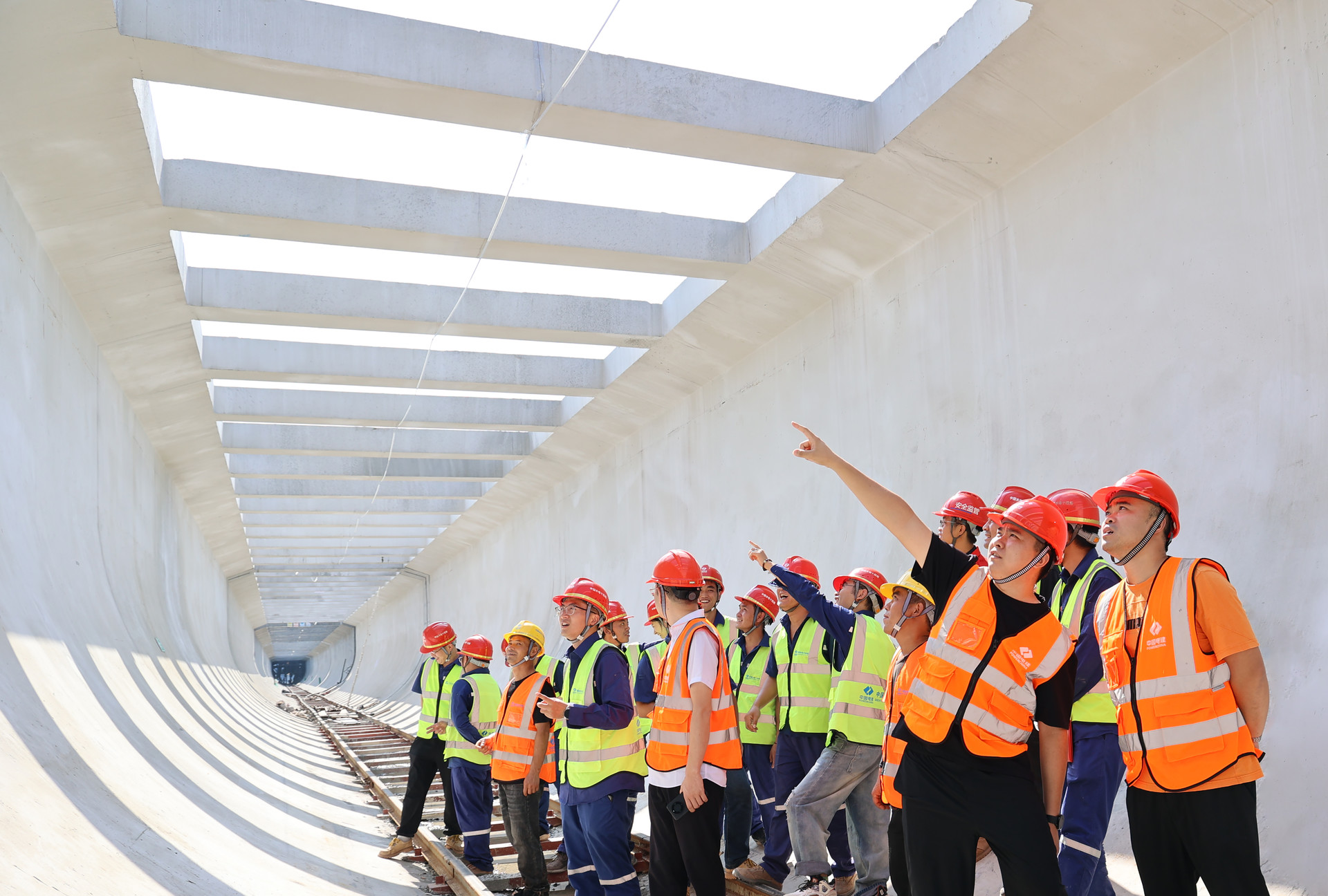 觀摩人員先后來到葛麻山隧洞襯砌混凝土施工樣板段、唐家溝渡槽第三跨槽身樣板段。現場負責人介紹,葛麻山隧洞總長1477.6米,隧洞為內徑6.3米的圓形斷面。在施工過程中,項目部嚴格按照施工方案和操作規范落實標準化、規范化工序,各項過程管控做到“精、準、嚴、細”,有效確保了襯砌工程的整體質量。項目質量負責人表示,針對唐家溝渡槽槽身施工的技術難題,項目部充分利用BIM建模與三維動畫制作等先進技術手段,對U型槽身特點、難點進行深入剖析與精準模擬研究,提前識別并規避施工中的技術質量風險。
