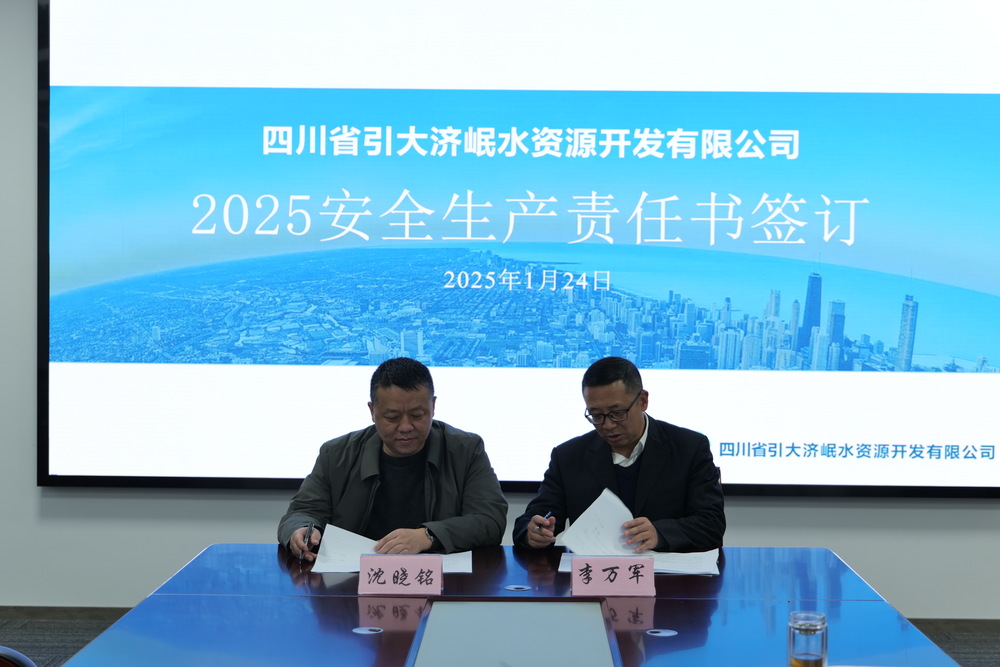 三是堅決把思想統一起來、形成合力,以鐵的決心鐵的毅力推進引大濟岷工程建設。全體干部職工要樹立強烈的事業心、使命感,以“久久為功”的意志和決心,鼓足干勁、鍥而不舍,在引大濟岷工程建設和引大濟岷公司發展征程中奮勇爭先,加快推進引大濟岷工程開工建設,奮力譜寫四川骨干水網新篇章。 會議強調要高度重視節日期間安全生產工作,全面開展安全大檢查、全面排查問題隱患,保障全體員工渡過祥和歡樂的新春佳節,會議上引大濟岷公司還開展2025年度安全責任書簽訂工作。