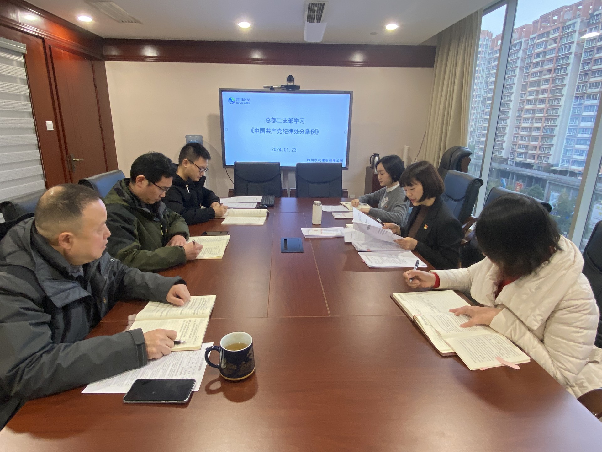 2024年1月23日,建設公司總部二支部在成都總部會議室召開黨員大會,集中學習新修訂的《中國共產黨紀律處分條例》(以下簡稱《條例》),公司黨委委員、紀委書記陳盛華以普通黨員身份參加會議。