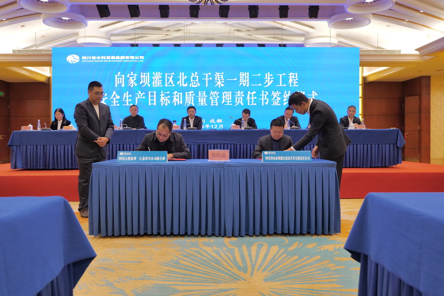 會議學習貫徹了習近平總書記關于安全生產(chǎn)重要論述和質(zhì)量強國建設的重要指示精神,傳達了全國安全生產(chǎn)電視電話會議、全省安全生產(chǎn)工作會議精神以及省委省政府和水利部、水利廳關于安全質(zhì)量管理的各項決策部署,見證了向家壩公司與向家壩灌區(qū)一期二步工程部分參建單位簽訂安全生產(chǎn)目標責任書和質(zhì)量管理責任書,認真分析水發(fā)集團項目建設安全質(zhì)量管理面臨的形勢,通報了歷次各級監(jiān)督檢查發(fā)現(xiàn)的主要安全質(zhì)量問題,安排部署當前和今后一個時期項目建設安全質(zhì)量管理工作。水利廳建設處、審監(jiān)處負責同志全面系統(tǒng)分析了當前水利建設面臨的新形勢、新問題、新挑戰(zhàn),要求水發(fā)集團要始終堅持問題導向,全面壓緊壓實責任,以大質(zhì)量管理為重要抓手,進一步強化安全生產(chǎn)、建設質(zhì)量等實行全過程、全鏈條管理,從嚴監(jiān)管,逗硬獎懲,為四川水利高質(zhì)量發(fā)展奠定堅實基礎。