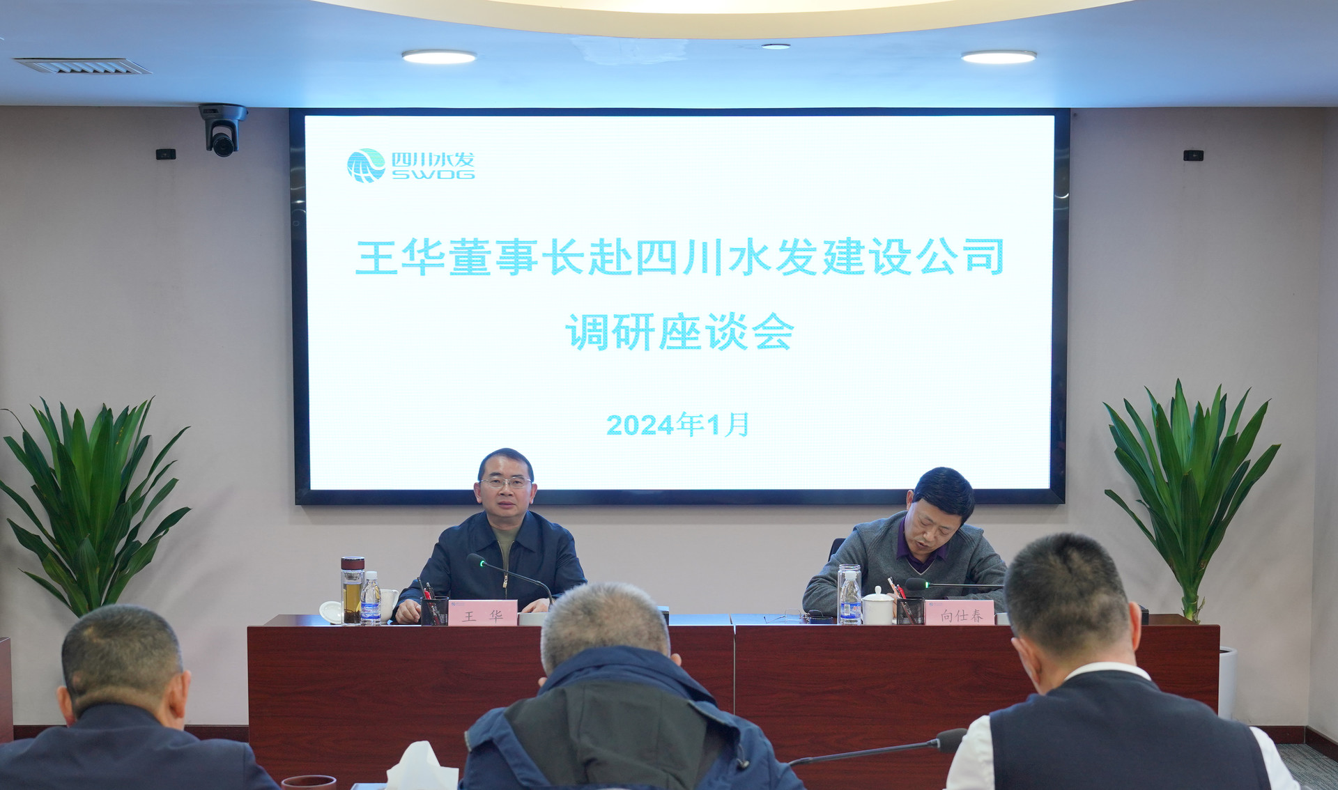 2024年1月10日,集團黨委書記、董事長王華一行赴四川水發(fā)建設公司開展調研并召開座談會,集團黨委副書記、副董事長、總經理向仕春陪同調研。