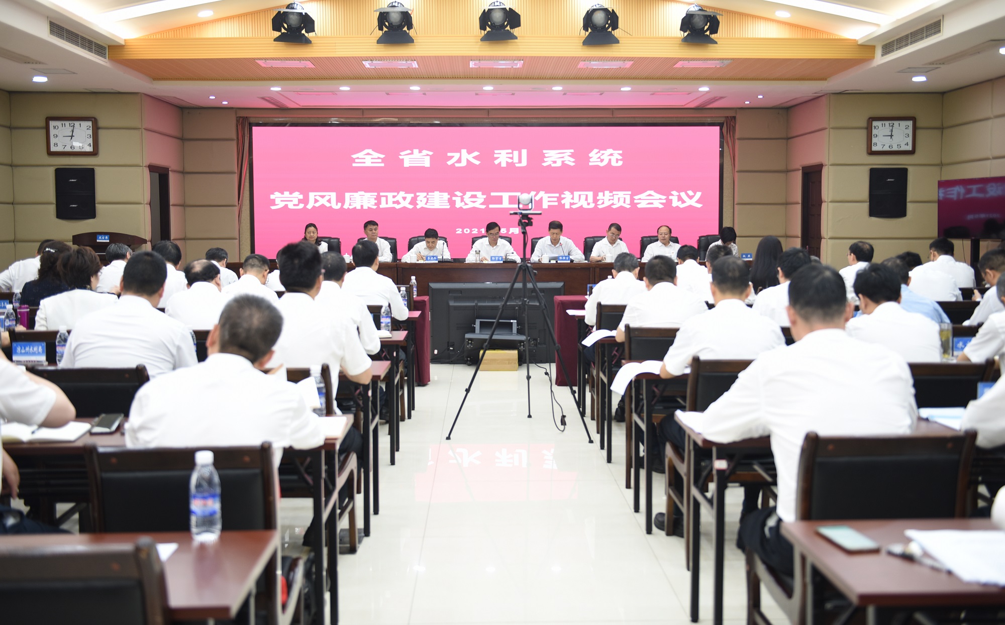 水利廳廳級領導,廳機關離退休支部書記,廳機關各處室支部書記,各直屬單位黨政主要負責人、紀委書記在主會場參加會議;省水文局,各市(州)水利(水務)局黨委書記、紀委書記,及轄區省管大型水利工程管理單位主要負責人、紀委書記在分會場參加會議;全省各市、縣級水務部門中層以上干部同步參加視頻會議。