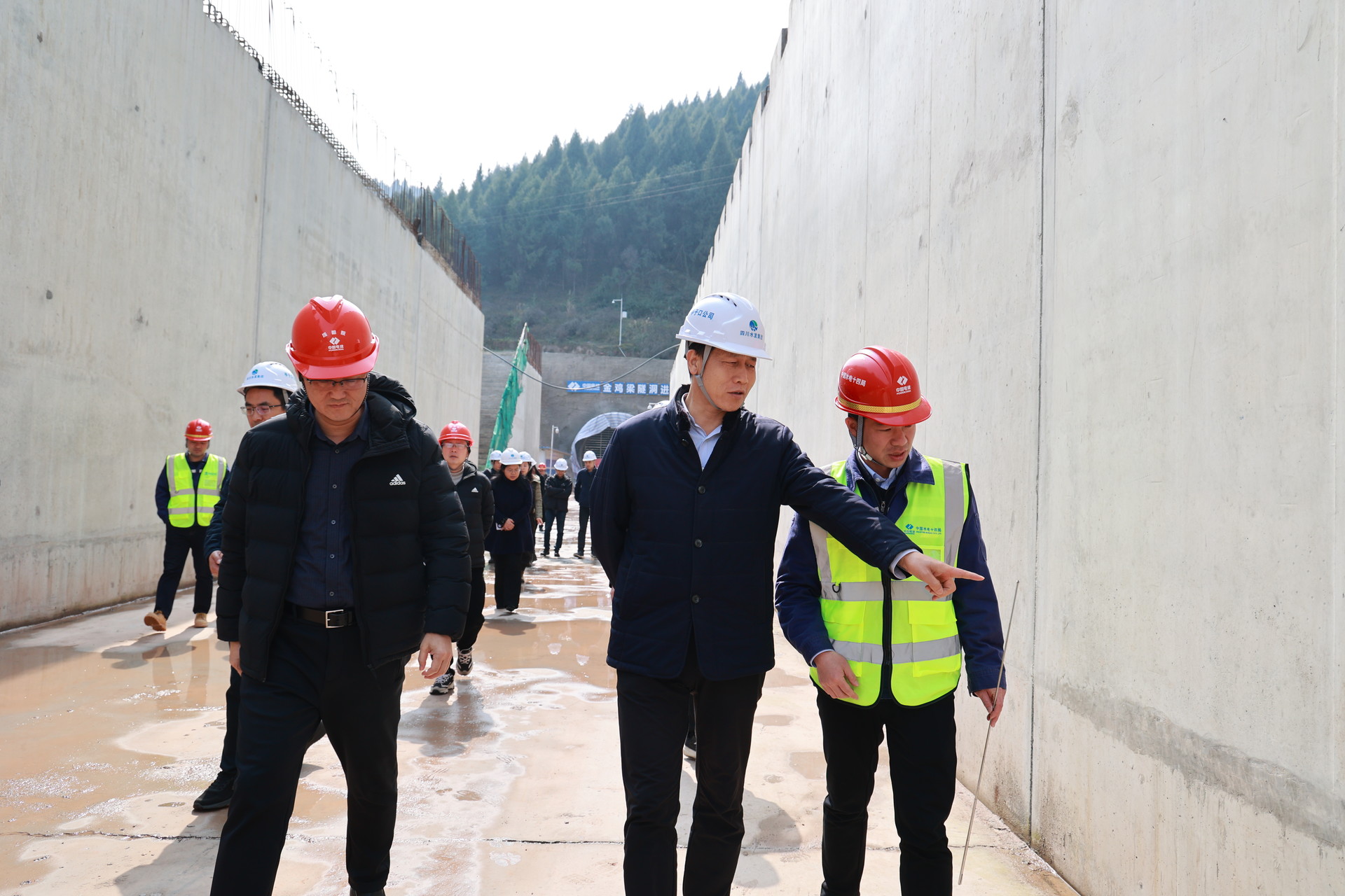 調研組一行詳細聽取亭子口公司信息化展示匯報,實地考察了運管中心、唐家溝高大渡槽、王家山隧洞、粟家廟渡槽施工區(qū)、金雞梁隧洞、余家灣明渠等關鍵部位的施工情況,全面了解亭子口灌區(qū)一期工程新增國債推進情況。