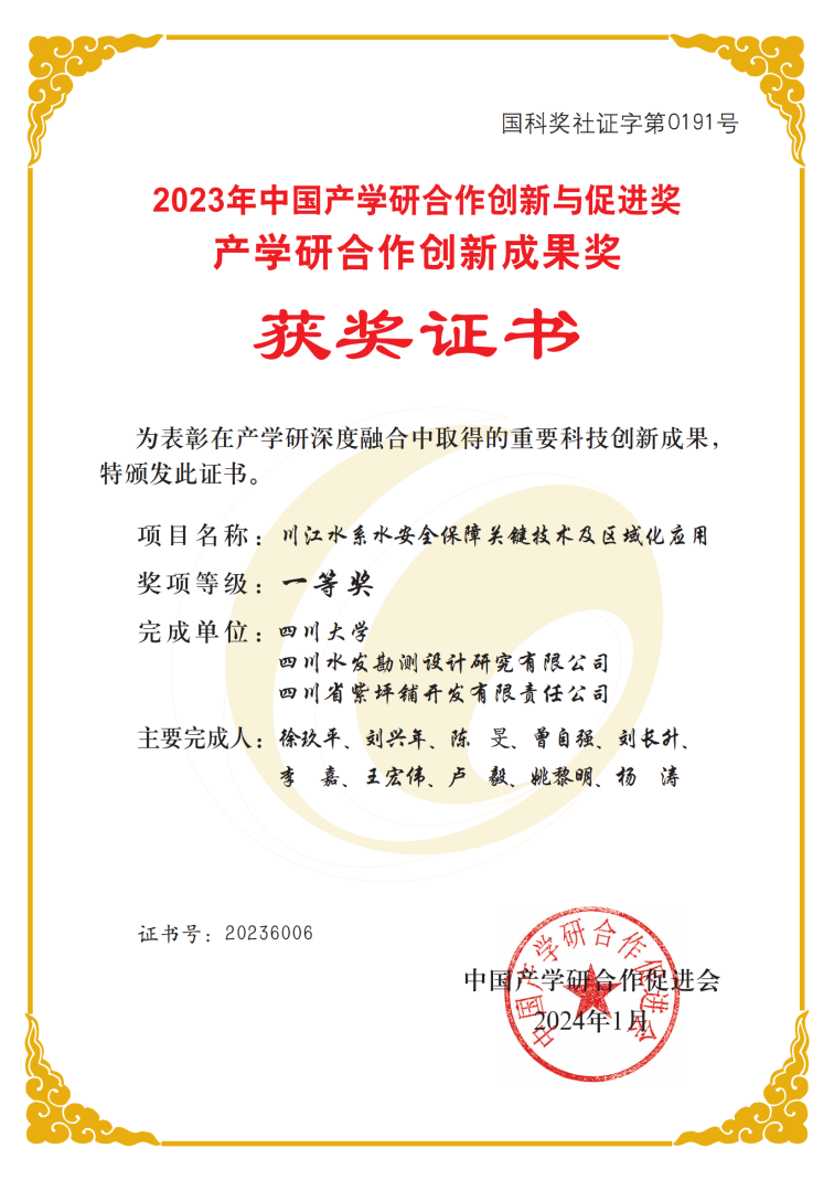 近日,由中國產學研合作促進會主辦的第十五屆中國產學研合作創新大會在北京隆重舉行。會議對2023年在產學研深度融合等方面作出貢獻的先進單位和個人進行了頒獎表彰,由四川水發設計公司聯合四川大學、四川省紫坪鋪開發有限責任公司完成的項目“川江水系水安全保障關鍵技術及區域化應用”榮獲2023年產學研合作創新成果一等獎。這是該公司首次斬獲該榮譽,也是其大力發展科技創新的重要成果,彰顯了集團在水安全保障領域開展高質量產學研創新協同的創新成果。