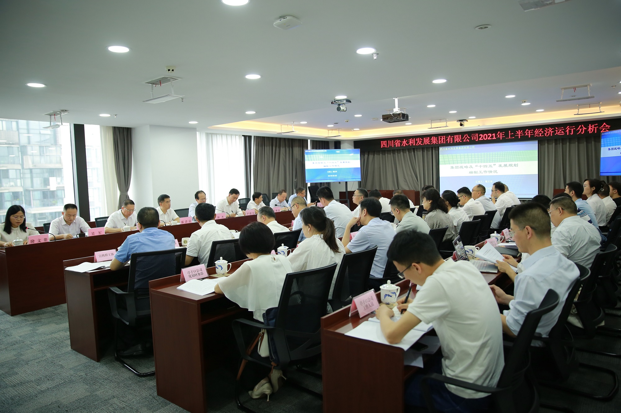 2021年7月14日,四川省水利發展集團有限公司召開2021年上半年經濟運行分析會,總結分析2021年上半年經濟運行情況,通報“十四五”規劃編制工作情況,研究部署下半年經營工作。集團黨委書記、董事長鐘杰主持會議,集團領導班子成員尹曉東、鄔清富、王剛強、代勇、黃永沾、吳軍、羅國書、隆文非出席會議,集團總部各部門負責人和下屬企業主要負責人、及部門負責人參加會議。