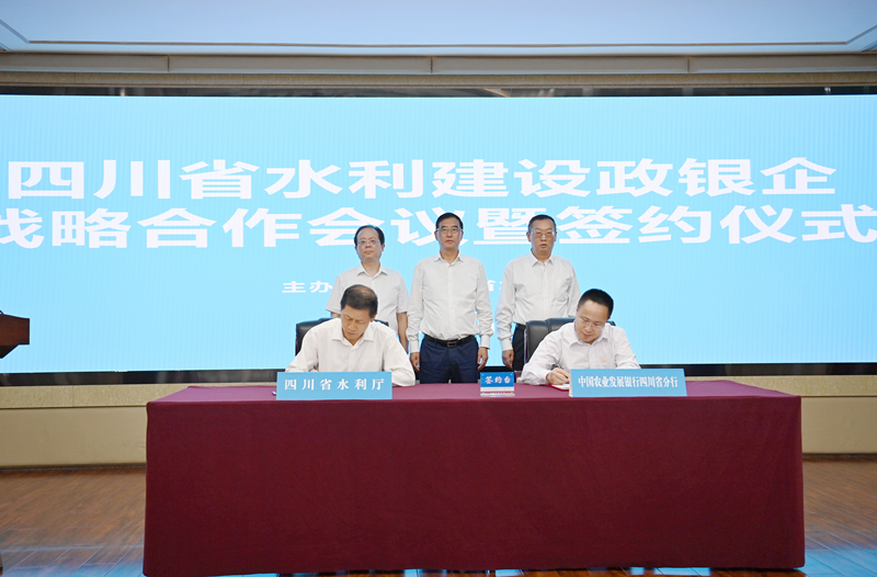 7月16日,四川省水利建設政銀企戰略合作會議暨簽約儀式舉行,四川省水利廳和中國農業發展銀行四川分行、中國農業銀行四川省分行、四川金融控股集團有限公司、四川銀行股份有限公司四大金融機構簽署戰略合作協議。這是四川省水利廳創新探索“政銀企1+3”四方合作機制以來,與首批金融機構簽署戰略合作協議,標志著四方合作機制取得突破性進展。下一步,水利廳和四家金融機構將加強深度合作,為四川重大水利工程建設和鄉村振興事業提供金融保障,為四川省水利發展集團和地方政府提升增信保障,在發展中實現政銀企各方共贏。