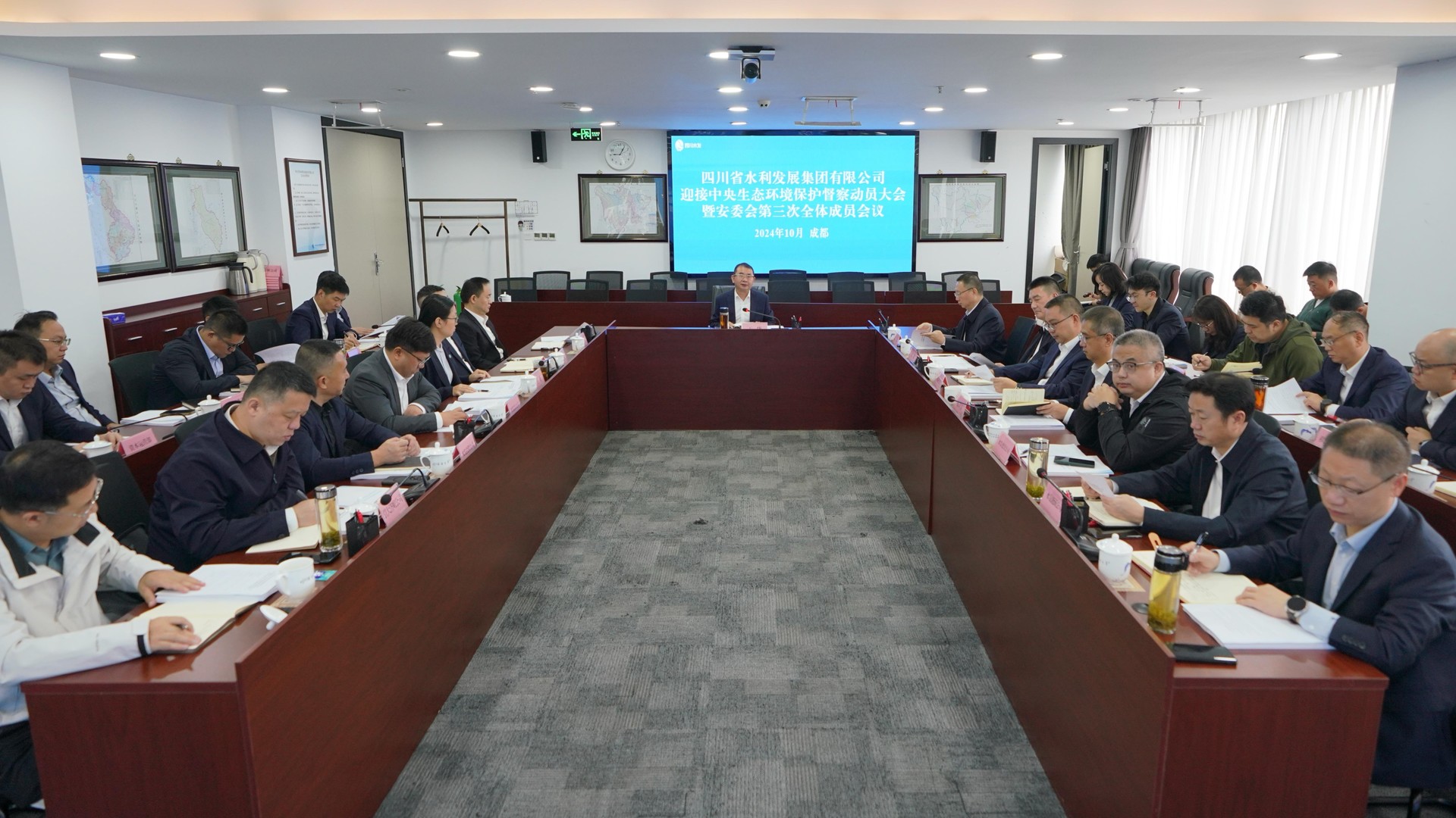 2024年10月18日,四川省水發(fā)集團(tuán)在中央第三生態(tài)環(huán)境保護(hù)督察組督察四川省動(dòng)員會(huì)后賡即安排部署相關(guān)工作。10月21日,四川省水發(fā)集團(tuán)組織召開(kāi)迎接中央生態(tài)環(huán)境保護(hù)督察動(dòng)員大會(huì)暨安委會(huì)第三次全體成員會(huì)議。集團(tuán)黨委書(shū)記、董事長(zhǎng)、環(huán)水保領(lǐng)導(dǎo)小組組長(zhǎng)王華主持會(huì)議并講話。?