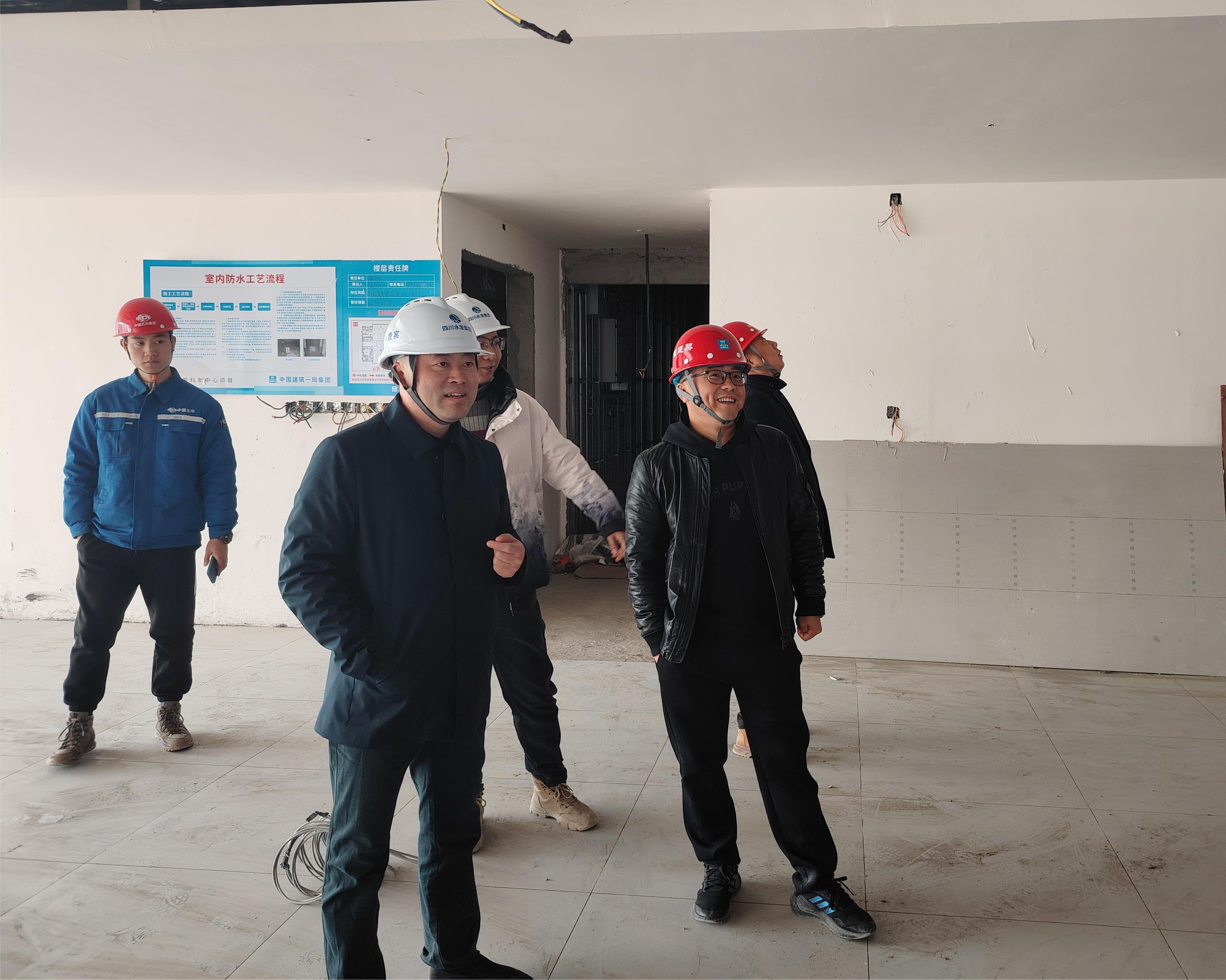 唐克飛一行實地檢查各樓層裝修施工情況,對項目安全、質量及施工進度提出了要求,并對項目參建各方在施工質量、進度方面作出的努力表示肯定。