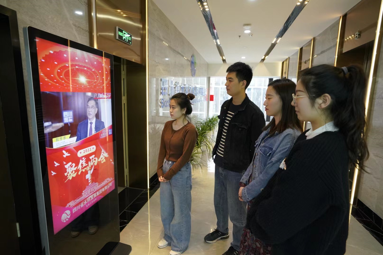 郭廳長在全國人大會議的發言及接受采訪的信息通過各種媒介迅速在集團傳達學習。集團在大廳電子顯示屏滾動播放郭廳長接受采訪的視頻后,集團總部職工觀看后紛紛表示,能參與世紀工程倍感榮幸。設計院公司引大濟岷團隊則通過小組會的形式,通過手機集體學習郭廳長在全國人大會議的發言及接受的媒體采訪。設計院公司、工程局公司、產業集團、亭子口公司、向家壩公司組織全部職工集體觀看了視頻,并結合當前正在開展的“兩去兩服務”作風整頓進行了討論發言。