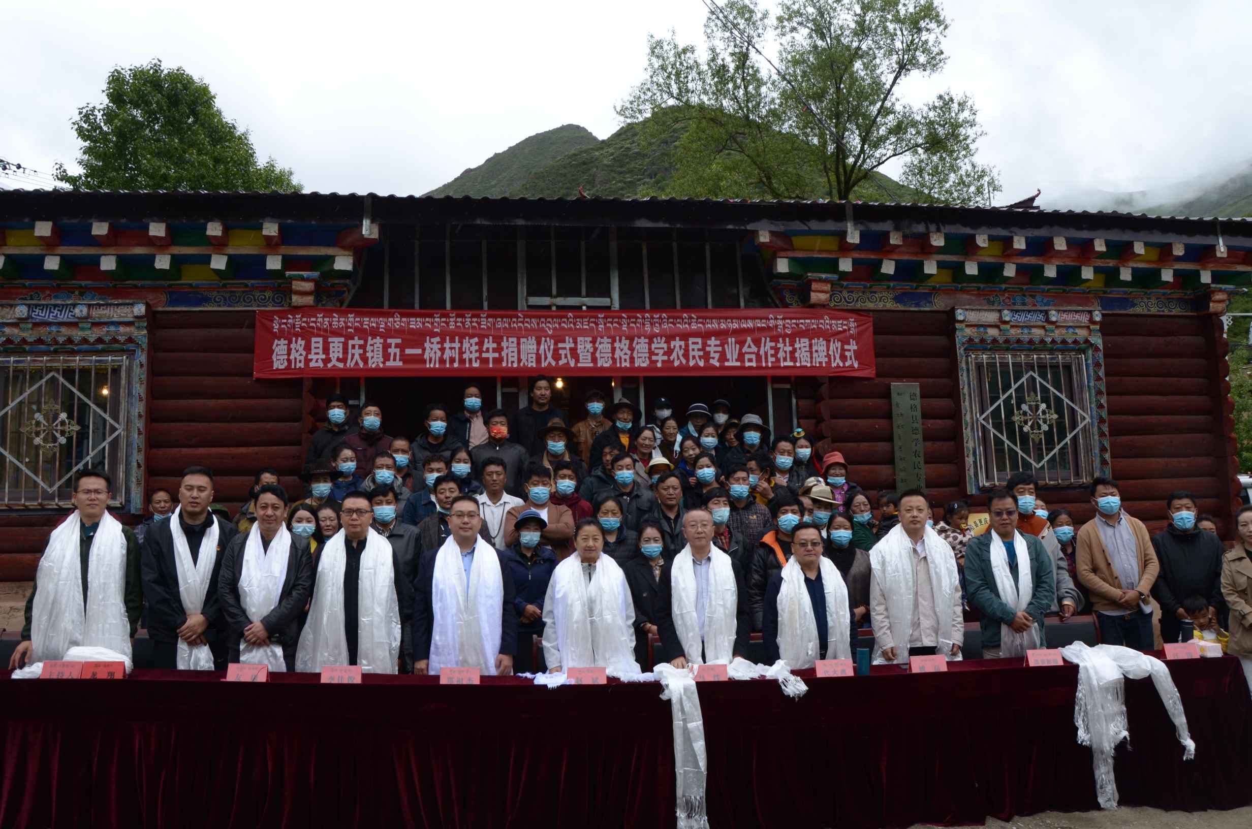 今年以來,集團與水利廳派駐五一橋村駐村干部,充分考慮民族地區的民族風俗和群眾的生活習慣,用真心和真情幫助群眾,共同致力指導五一橋村成立農村集體經濟合作社。通過與德格縣市場監管局、縣稅務局等部門的密切協調,于4月12日完成五一橋村集體經濟合作社的注冊,取得德格縣德學農民專業合作社營業執照。通過廣泛動員,293位五一橋村村民加入合作社。在村民集資的基礎上,以五一橋村集體配套一部分、更慶鎮政府支持一部分、集團支持一部分的方式,作為五一橋村集體牧場的啟動資本,實現集體經濟“零”的突破。在當天的捐贈現場,副總經理鄭祖杰代表集團向德格縣德學農民專業合作社捐贈價值55萬元的牦牛70頭。