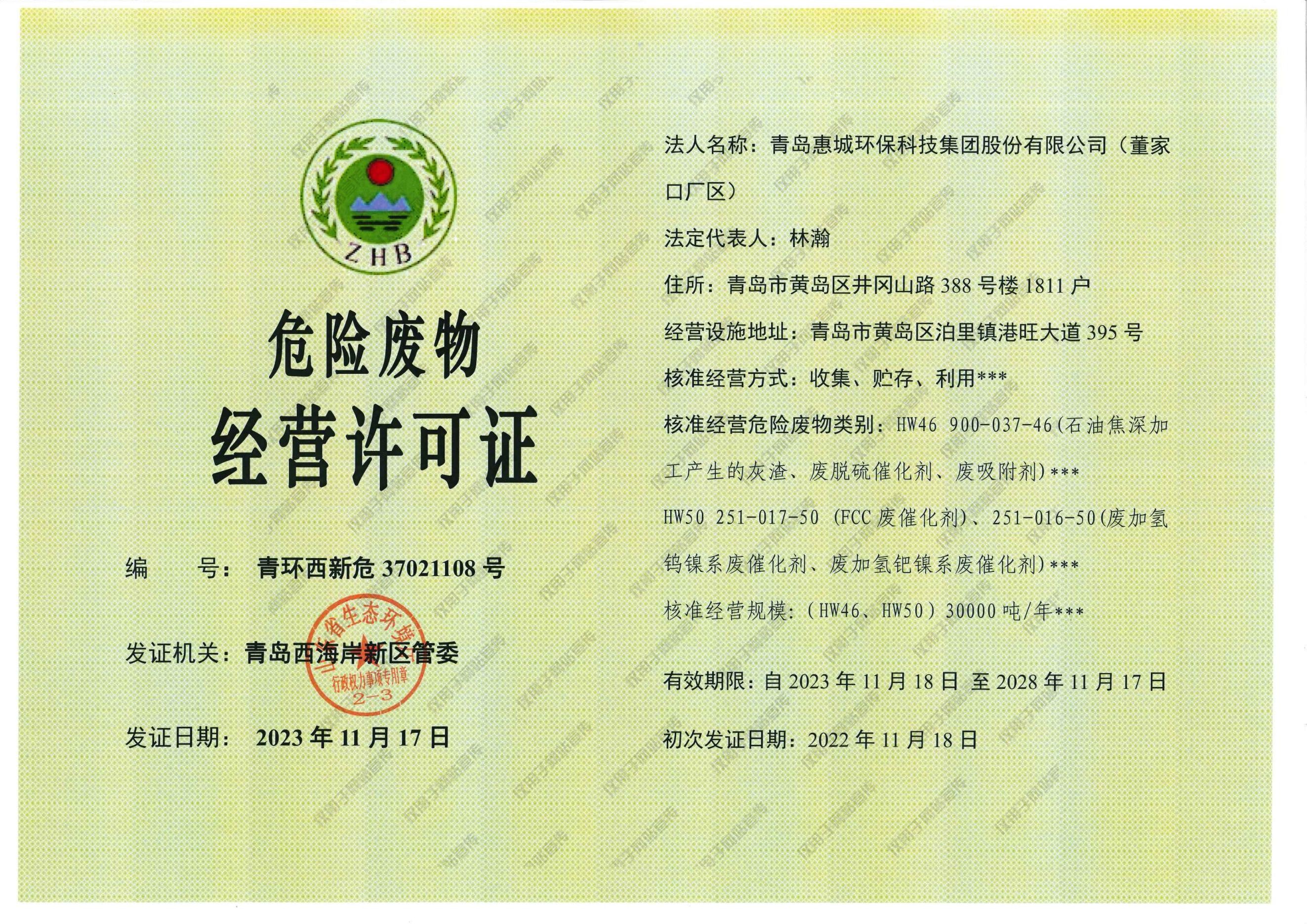 青島惠城環(huán)保科技集團(tuán)股份有限公司
