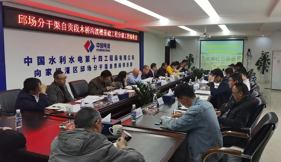 2023年11月29日,向家壩灌區(qū)北總干渠一期一步工程邱場分干渠自貢標木橋溝渡槽基礎(chǔ)工程分部工程驗收會在中國水利水電第十四工程局項目經(jīng)理部會議室(富順板橋)順利召開。木橋溝渡槽基礎(chǔ)工程是向家壩灌區(qū)北總干渠一期一步工程第一個組織驗收的分部工程,特邀四川省水利廳質(zhì)量與安全中心站參會指導,一期一步工程其余各參建施工和監(jiān)理單位參會交流觀摩。