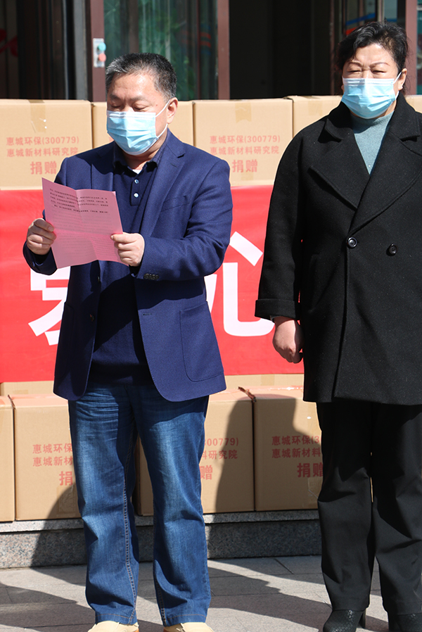 公司董事長張新功表示,公司自成立以來始終堅持讓“社會尊重”的管理目標,特別是在深交所創業板上市后更應以實際行動履行上市公司的社會責任和擔當。目前新冠肺炎疫情形勢依然嚴峻,惠城環保將與社會各界一道,持續為抗“疫”傾情獻力,踐行企業的使命和擔當。