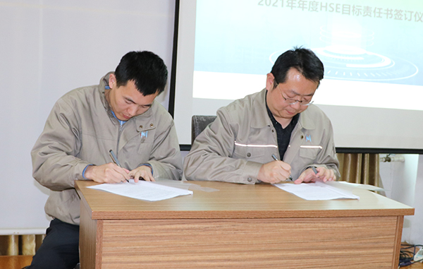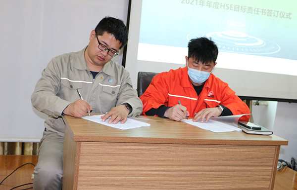 隨后公司總經理與生產管理部、HSE管理部,生產管理部與設備管理部,設備管理部與維修維保方簽署了年度HSE責任書。