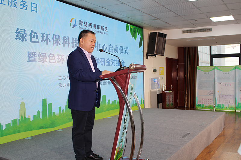 青島西海岸新區工信局副局長張青宣讀《關于青島西海岸新區綠色環保科技創新中心的批復》