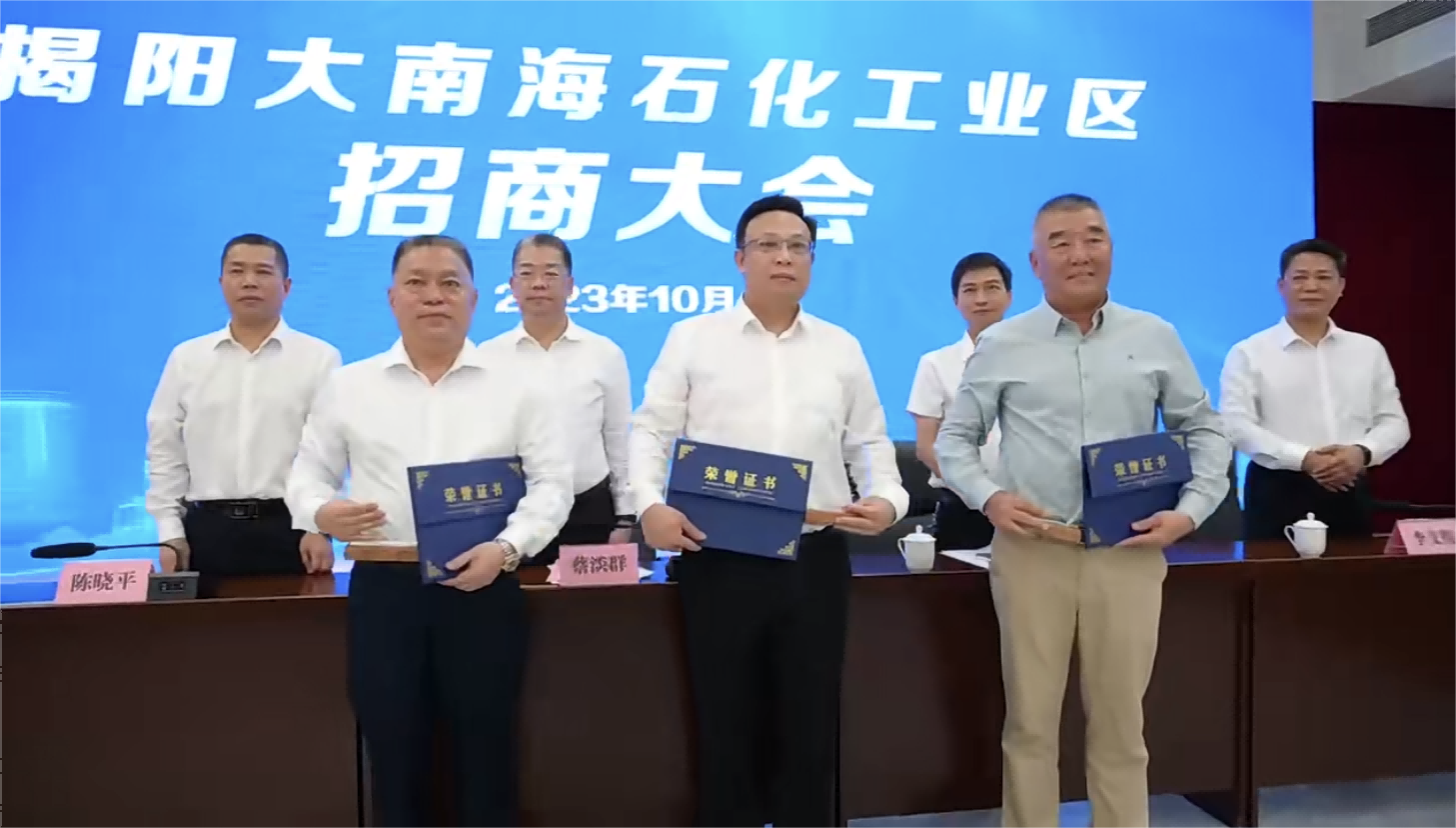 10月20日上午,揭陽大南海石化工業(yè)區(qū)招商大會(huì)順利舉行,以招商引資大突破助推發(fā)展動(dòng)能大提升。揭陽市委常委、副市長、大南海石化工業(yè)區(qū)黨工委書記蔡淡群,大南海石化工業(yè)區(qū)黨委副書記、管委會(huì)主任陳曉平等出席會(huì)議,惠城環(huán)保集團(tuán)創(chuàng)始人張新功受邀出席并被聘任為招商大使。