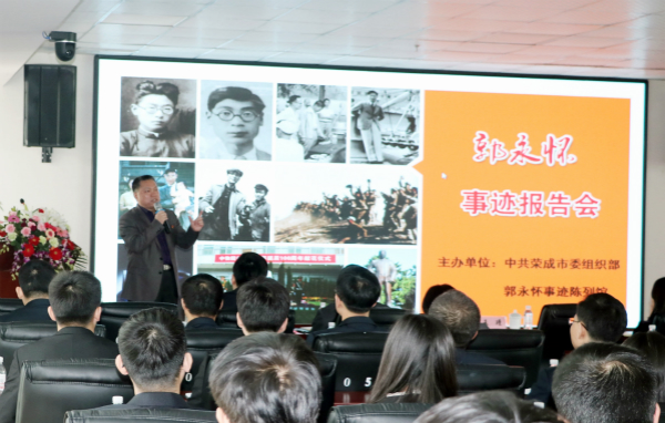 3月8日上午,榮成市委組織部郭永懷先生事跡報告宣講團來我司舉行宣講活動,講述郭永懷先進事跡,激勵科研人員愛國奮斗。新區工信局副局長李云峰、我司董事長張新功及公司各級管理人員、全體黨員等百余人共同聆聽了此次宣講。