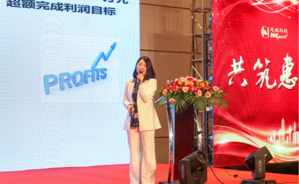 先,常務副總經理葉紅匯報了2018年的工作情況,過去一年各部門凝心聚力,突破瓶頸,超額完成生產、銷售等任務,實現了利潤收入的持續增長。然后,董事長張新功以公司管理目標為主線,結合公司的戰略發展規劃,講述并指出2019年是公司發展的轉折點、新起點,在此節點上全體員工要努力奮斗,因為唯有奮斗才能創造幸福,并由此揭開此次年會的主題——奮斗點亮幸福。