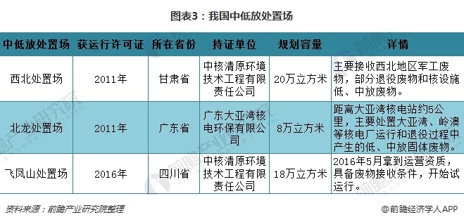 另外,以每年每臺核電機組產生60立方米固體廢物包計算,預計2020年我國每年將產生多達3480立方米的固體廢物。然而,我國目前僅有中低放核廢料處置場3座,分別為西北處置場、北龍?zhí)幹脠鲆约帮w鳳山處置場,其規(guī)劃容量分別20萬立方米、8萬立方米以及18萬立方米。因此,我國中低放處理能力十分緊缺,按照國務院印發(fā)的“十三五”生態(tài)環(huán)境保護規(guī)劃,提出要建設5座中低放射性廢物處置場。