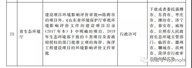 北極星大氣網(wǎng)訊:近日,山東省人民政府頒布《山東省人民政府關(guān)于調(diào)整實(shí)施部分省級(jí)行政權(quán)力事項(xiàng)的決定》,將環(huán)評(píng)審批、危廢許可等多項(xiàng)審批權(quán)下放,詳情如下: