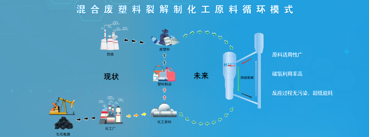 惠城環保自主研發的混合廢塑料深度催化裂解(CPDCC)技術,成功開創了碳氫資源循環使用的新途徑,這將是中國經過驗證認可的最具影響力的廢塑料化學回收工藝,大幅拓寬了廢塑料處理方式并將其轉化成具有高附加值的化工原料,幫助降低中國在廢塑料加工過程中的能耗和成本,從而減少了碳排放,促進實現塑料的循環利用。